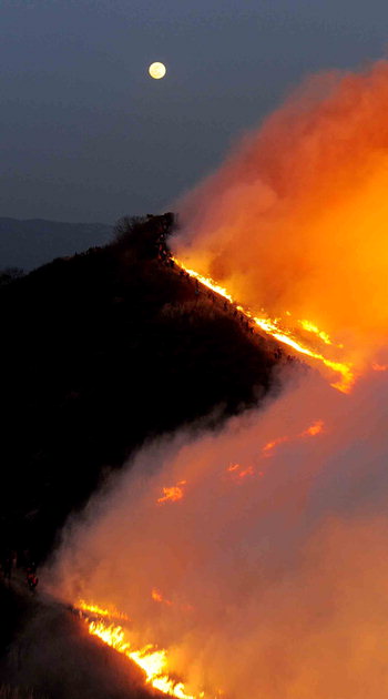 하나는 정월 대보름에 맞춰 달집태우기 혹은 쥐불놓이의 연장선상에서 '소원 빌기' 행사를 벌이는 것이고, 나머지는 억새밭을 주요 관광 자원으로 삼는 지자체가 억새를 더욱 많이 자라게 하려고 억새를 태우는 것이다.