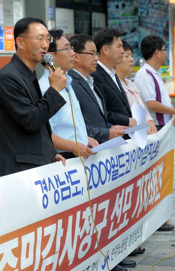 민주노동당 경남도당은 7일 오후 창원 정우상가 앞에서 '월드콰이어챔피언십 행사유치에 대한 주민감사 청구 선포' 기자회견을 열었다.
