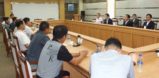 26일 오후 창원시 마산합포구청에서 박완수 창원시장과 찬성 측인 '수정뉴타운추진위' 주민이 만나 30여 분간 대화했다.