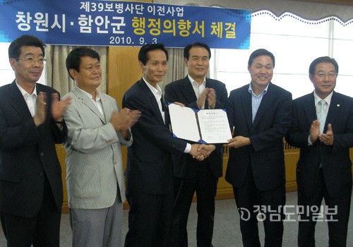 창원시와 함안군이 39사단 이전에 대해 상호협력하기로 했다.