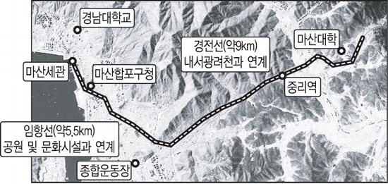 통합 창원시 마산지역 도심을 가로지르는 임항선이 그린웨이로 탈바꿈한다.