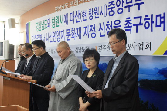 추모사업회 백남해 대표 등은 9월 30일 오전 11시 경남도청 프레스센터에서 기자회견을 열고 "현재 이곳은 매립지로 자주 거론되고 있고 시신 인양지에 접한 부지에 전혀 어울리지 않는 구조물들이 들어서서 역사 현장 훼손은 시간 문제"라며 "창원시와 경남도는 이 일대를 국가지정문화재로 신청해 일대에 '김주열 공원'을 만들고 민주화운동기념사업회가 추진하는 '한국 민주주의 전당'을 유치한다면 일거양득의 효과를 얻을 것"이라고 말했다.