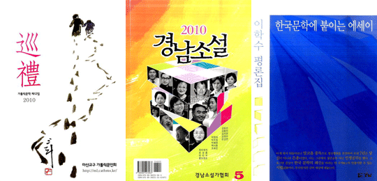△경남소설가협회 <2010경남소설 5집> = 5집에는 모두 14편의 단편소설이 실려있다. 김동인의 '제비의 옛집', 김봉진 '진실한 사랑을 위한 진실로 인간적인 예의', 김지연 '인생삼기', 김현우 '유기', 하아무 '꽃분이 할매', 황보정순 '파랑, 빗물을 머금고' 등이다. 이들 소설에는 경남이라는 향토색이 짙은 이야기들이 맛깔스럽게 펼쳐지고 있어 서울이나 다른 지방에서 발표되는 소설과는 차별화되고 있다. 경남인쇄·출판사. 353쪽. 1만 3000원.