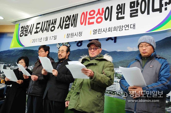 열린사회희망연대는 17일 오전 10시 40분 창원시청 프레스센터에서 기자회견을 열고 '창원시의 도시재생 사업은 도시재생이냐, 도시혼란이냐?'라는 제목의 성명을 냈다.