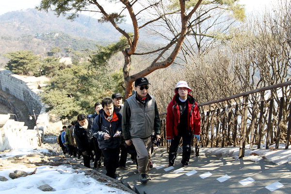 청와대 기자단과 산행 나선 이명박 대통령 "정치적 결정 있을 수 없다"
