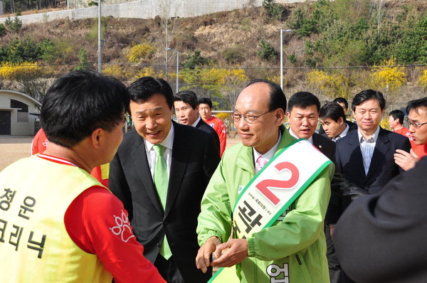 민주당은 9일 이광재 전 강원도지사의 김해 방문을 계기로 '친노 적통론' 논쟁에서 우위를 점하려 했으며, 분당 을 선거전에 뛰어든 손학규 대표까지도 10일 오전 김해를 방문해 곽진업 후보의 지지를 호소했다.