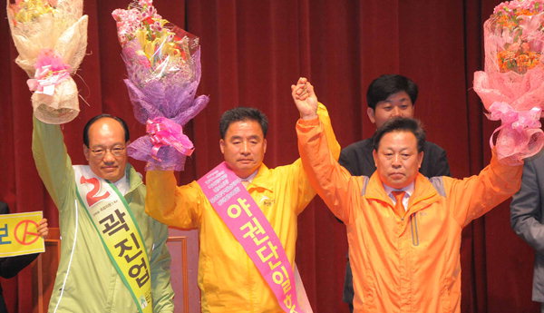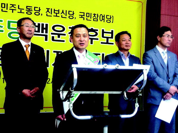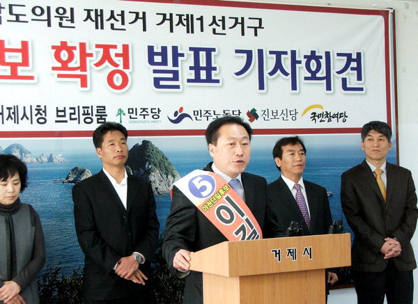 ◇거제 1 '진보신당 소극적·민주당 적극적' = 거제는 지난해 6·2지방선거에서 단일화 실패 아픔이 묻어 있는 곳이다. 당시 거제시장 선거에서 진보신당 김한주·민주노동당 이세종 후보가 결국 각각 출마, 조선소 노동자 표가 양분되는 바람에 한나라당 권민호 현 시장에게 자리를 내줬다. 이러한 기억을 안고 있는 야권이 이번 '광역의원 거제 1선거구'에 민주노동당 이길종 후보를 단일후보로 선출했다. 단일후보 경선에는 진보신당 박명옥 전 시의원, 국민참여당 김성갑 전 청년위원장이 참여했다. 민주당은 후보를 내지는 않았지만, 함께 발맞췄다.