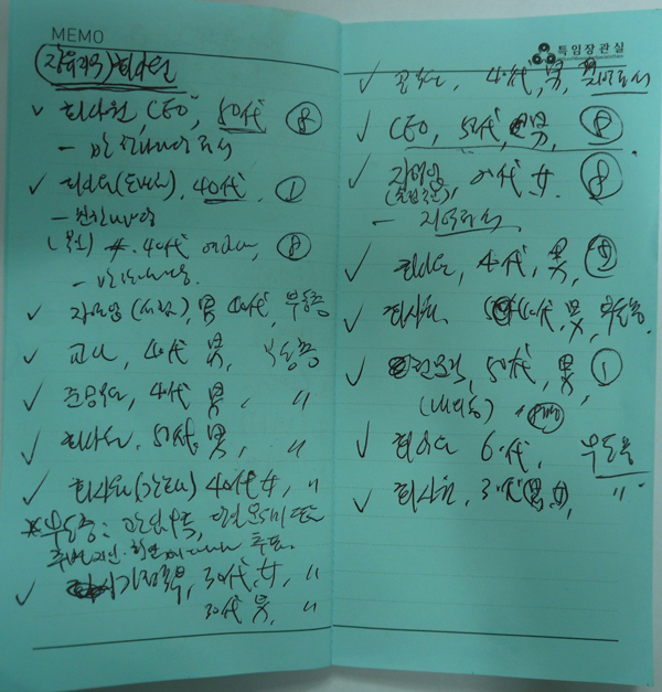 - [특임장관실 개입 논란] 문제의 수첩에는 어떤 내용이?