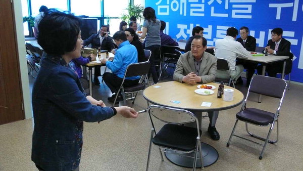 선거 사무소 관계자는 "김해지역뿐 아니라 경남 전 지역에서 후보와 인연이 있었던 사람들이 사무소를 찾아 격려해주고 김해에 사는 지인들을 설득하는 일도 하고 있다"고 전했다.