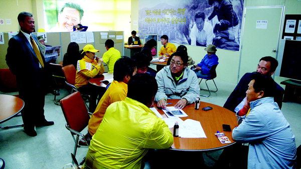 선거 사무소 관계자는 "주말이면 전국에서 700~1000명 정도 김해를 찾아 자원봉사를 한다"며 "이번 선거에서 큰 활력소가 된다"고 말했다.