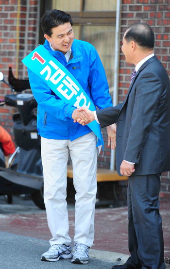 선거운동에서 최근에는 트위터·페이스북 등 SNS 활용이 무시할 수 없는 요소로 작용하고 있다. 하지만, 면대면 선거운동은 여전히 고정불변의 기본적인 선거운동 방식이다. 후보자들이 많은 시간과 체력을 소모하는 면대면 선거운동을 여전히 중요시하는 이유는 직접 눈을 마주치고 인사를 건네고 악수를 함으로써 마음을 전할 수 있는 가장 효과적인 방법이라 생각하기 때문이다. 박빙의 승부가 예상되는 김해 을 두 후보자는 어떠한 이미지로 유권자에게 다가가고 있을까?
