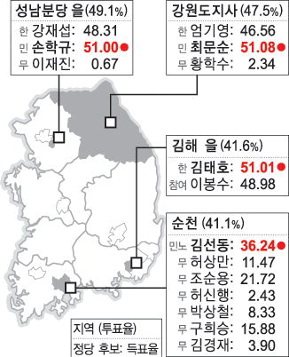 김해을 1773표차 …김태호 '정치적 재기' 성공, 정권심판 '찬물'