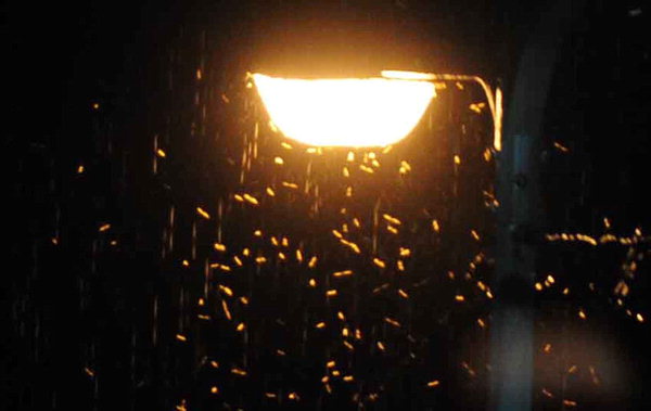 지난 10일 오후 창원시 진해구 웅천동 수도마을에서 주민 정영식(61) 씨가 흰색 플라스틱 통을 보여줬다. 간밤에 모아둔 깔따구 사체가 소복했다. 도대체 이건 왜 모았을까. "보여드릴라고. 이놈들이 해질녘부터 밤 10시까지 준동을 하고는 없어지거든예. 매립지 웅덩이에서 발생된 놈들이 불빛따라 회오리바람 모양으로 마을로 쳐들어오지예." 마을 앞 부두에서 횟집을 운영하는 박영만 씨는 "그래서 장사도 못할 지경"이라고 했다. "수족관이고 형광등이고, 불빛만 보면 새까맣게 깔따구가 모여드니까 누가 오겠습니꺼" 했다. "최악이었던 2005~2007년 무렵보다는 못해도 요 몇년과 비교하면 최고 심각합니더."