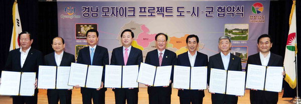 이 프로젝트가 5일 오전 11시 30분 도청 도정회의실에서 김두관 지사와 7명의 시장·군수가 사업 협약을 맺는 것으로 본격적인 닻을 올렸다. 이날 참석한 시장·군수는 김동진 통영시장, 정만규 사천시장, 김맹곤 김해시장, 엄용수 밀양시장, 김충식 창녕군수, 이재근 산청군수, 하창환 합천군수.
