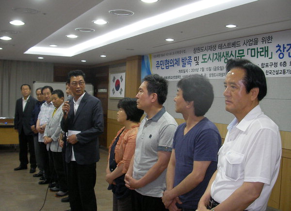 지난 15일 오후 창원시 마산합포구청에서 열린 '창원도시재생 시범사업 주민협의체 발족식'에서는 창동지구재생추진주민위(위원장 박종근)와 오동동지구추진주민위(위원장 최기석, 조용식), 노산동지구추진주민위(위원장 정종기) 등이 발족했다.