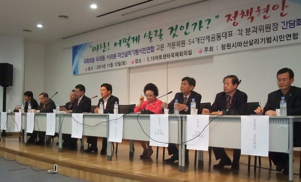 창원시 통합청사 문제에 대해 적극적인 움직임을 보이고 있는 '마산살리기범시민연합'은 지난 12일 3·15아트센터에서 '통합청사' 문제를 논의하기 위한 간담회 자리를 마련했다. 시민연합은 이에 앞서 '이주영(마산 갑)·안홍준(마산 을) 국회의원이 참여한다'는 점을 강조하며 지역사회에 알렸다. 하지만, 실제 두 명의 국회의원은 이날 자리에 불참해 '책임 회피'라는 꼬리표를 달았다.