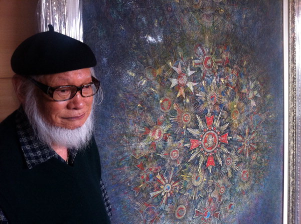 장 화백이 주로 그리는 것은 꽃. 하지만, 이번에 택한 것은 훈장이다.