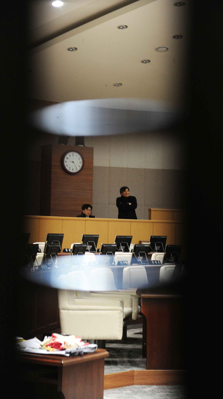 창원지역 의원들은 이날 오전 9시부터 마산지역 의원들이 제출한 ‘창원시 3대 중요시설 지역 안배 결정 촉구결의안’이 상정되는 것을 막고자 본회의장 입구를 봉쇄하고 있다. 지난 밤사이 마산지역 안이 상정되면 부결을 장담할 수 없는 상황이 돼버려 일단 본회의장 입구를 막고 다른 지역 의원들과 논의하겠다는 것이다.