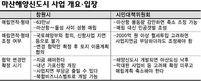 - "마산해양신도시 섬형매립 확정 안돼"