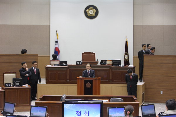 장동화(무소속, 북면·의창동) 의원은 "28명이 서명해 다수 의원이 이번 임시회에서 상정하지 않기로 뜻을 모았는데 의장이 무책임한 행동을 해 불신임 건의안을 상정하겠다"고 말했다.