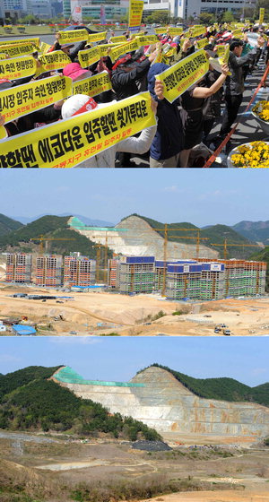 이 관계자는 입주민들이 제기한 의혹들에 대해 "아파트가 제일 가깝고 중요하니까 환경영향평가서에도 경관 면 등에서 기준을 잡아놓았다. 채석장 복구는 이미 올 1월 완료돼 철강산업단지로 메우려 한다는 주장도 말이 안 된다"고 덧붙였다.