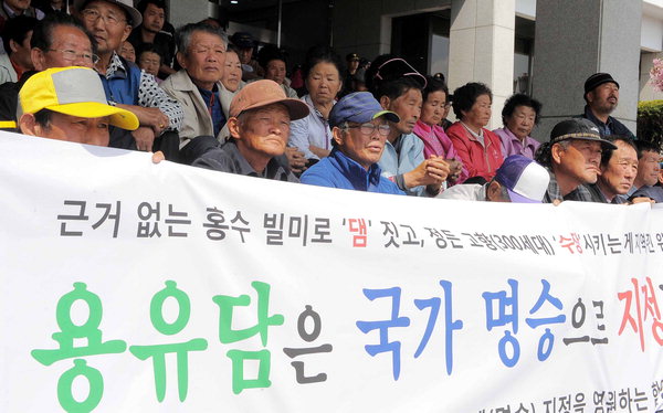 그러나 댐 건설에 찬성하는 측도 있다. 전날(16일) 문정댐 추진위원회와 마천면 이장단협의회 등은 대전에 있는 문화재청 앞에서 "용유담 명승 지정 철회와 지리산댐 조기 건설"을 요구하는 결의대회를 열었다.