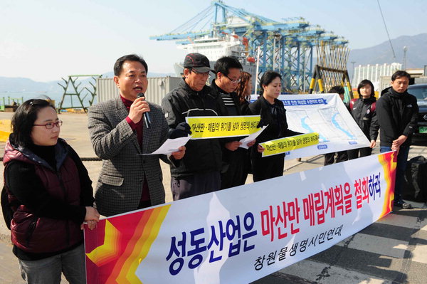 마산만의 매립을 절대 반대하는 시민단체도 매립 자체는 문제가 있지만 당시 상황을 고려해 어쩔 수 없이 반 보 양보했습니다. 지역사회의 여론도 성동조선의 요구를 이해하는 분위기였습니다.