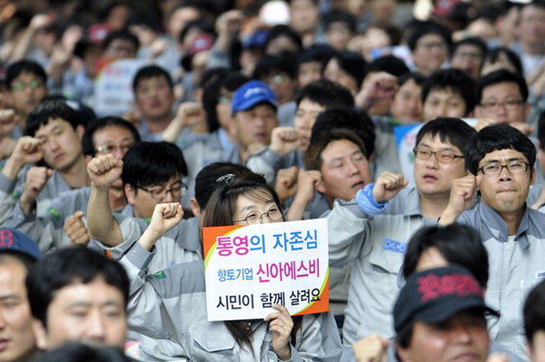 도산 위기 통영 신아sb 노동자들, 서울 무역보험공사 앞 대규모 집회