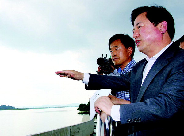◇'수미쌍관' 4대강에 방점 = 대권주자로 거론되기 전에 김 지사가 전국적인 주목을 받은 건 4대강 입장 때문이었다. 이명박 정부의 4대강 사업에 대한 찬반으로 전국이 들썩일 때, 십수 년 만에 야권 도지사로 경남도청에 들어온 김 지사는 안으로는 여당 출신 도지사에 몸이 밴 공무원과, 밖으로는 여당 일색인 도의회와 싸우면서도 4대강 사업에 대한 애초 입장을 견지했다. 사업권 회수와 정부와 법정다툼까지 일련의 '낙동강 전투'는 도민 일부와 환경단체의 열렬한 지지를 받으며 'MB와 맞짱 뜨는' 단체장으로 입지를 높였다.