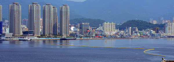 창원시는 마산합포구 해운동 한국방송통신대학교마산학습관 앞바다에 오탁방지막을 설치하면서 사실상 마산해양신도시가 착공했다고 밝혔다. 하지만, 지난 8일 현장을 찾으니 공사는 진행되지 않고 있었다.