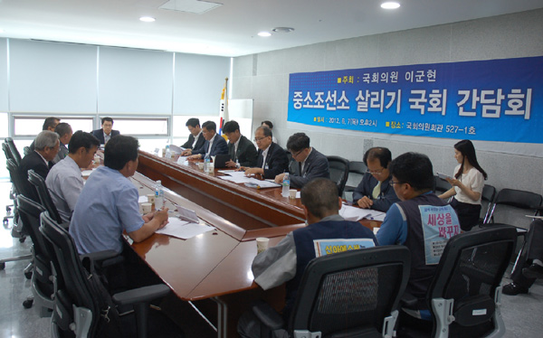서울 국회의원회관에서 지난 7일 오후 2시 이군현 의원 주재로 열린 '중소조선소 살리기 국회 간담회'는 답답했다.