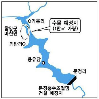 수몰 예상 지역은 함양 마천면 가흥리~의탄리 경계지점과 칠선계곡 입구에 있는 의평마을 도로변이다.