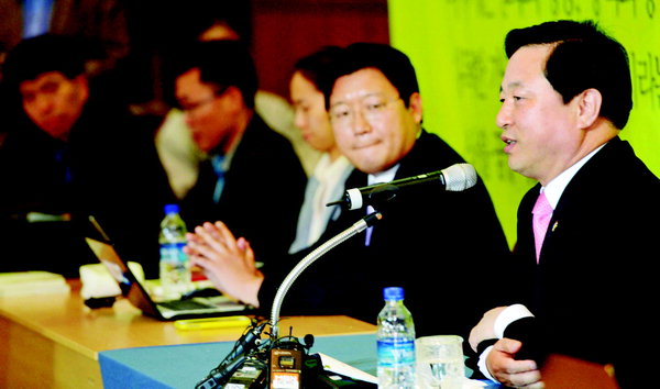 당내 대권후보 경쟁 상대가 될 문재인 의원은 15일 김두관 지사에 대해 "저에게는 가장 벅찬 경쟁 상대가 될지도 모른다"고 말해 눈길을 끌었다. 문재인 의원은 "행자부 장관을 하며 참여정부 때 함께 했고 경남지사도 맡고 계시는 등 능력이 검증된 분이고, 이장에서 시작했다는 스토리를 갖고 있다"고 추켜세웠다.