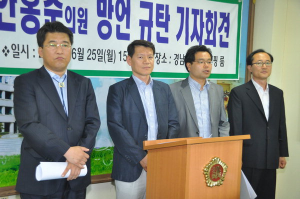 이날 기자회견에 참석한 김성진 창원 마산합포구 위원장은 "안 의원이 마이크만 잡으면 사고를 친다는 게 정설화돼 있긴 하지만, 요즘 이민도 돈 없으면 못 가는데, 이번 발언은 해도 해도 너무 심했다"며 "스님들이 하안거에 들어가듯 100일 묵언 수행을 하든지, 자질 없음을 인정하고 사퇴해야 한다"고 강조했다.