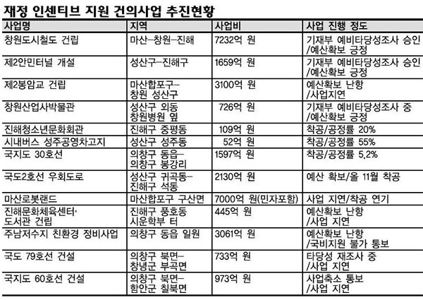 [11만 메가시티 창원 출범 2년] (2) 통합 인센티브사업 진행 상황
