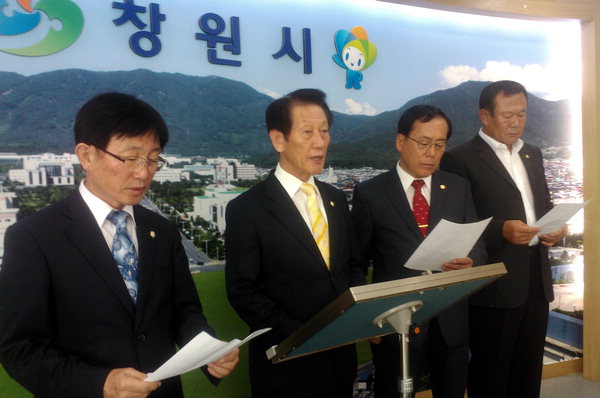 지난 9월 김성일(이·자은·덕산·풍호동) 부의장을 비롯해 전수명(중앙·태평·충무·여좌동), 김헌일(태백·경화·병암·석동), 이치우(웅천·웅동1·2동) 의원이 새누리당에 들어갔다. 진해지역 의원 4명은 "진해 발전을 위해 새누리당 김성찬 국회의원과 함께한다"는 명분을 내세웠다. 희망진해사람들 등 시민단체와 야권 의원들은 반발했다. "철새 정치인은 즉각 사퇴하라", "통합 반대에 앞장서 무소속으로 당선됐거나 야권 후보 단일화에도 핵심 역할을 한 의원들이 권력자에게 붙어 차기 공천을 확보하려는 얄팍한 술수"라는 비난이 잇따랐다.