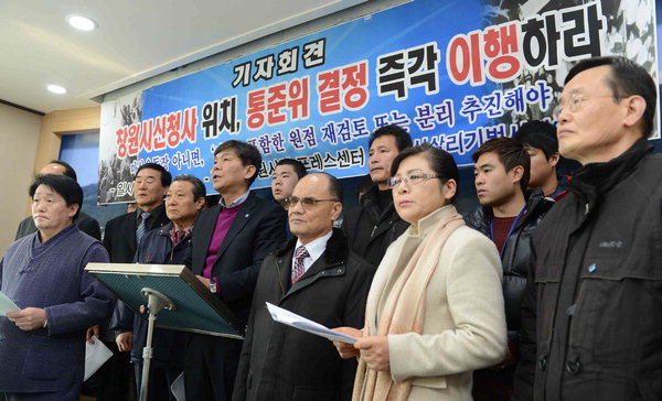 마산살리기범시민연합(상임대표 조용식)은 지난 8일 창원지방법원에 '창원시 임시 청사 사용금지 가처분 신청'을 했다고 밝혔다. 앞서 장동화(새누리당, 북면·의창동) 의원은 통준위 결정 무효화에 "의회 권한을 포기한 결과"라고 주장하는 등 의회 안팎에서 파열음이 잇따르는 분위기다.