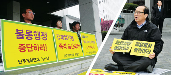 장영달 위원장 휴업전 협의 약속…민주개혁연대 "폐업 중단 요구" 무기한 단식