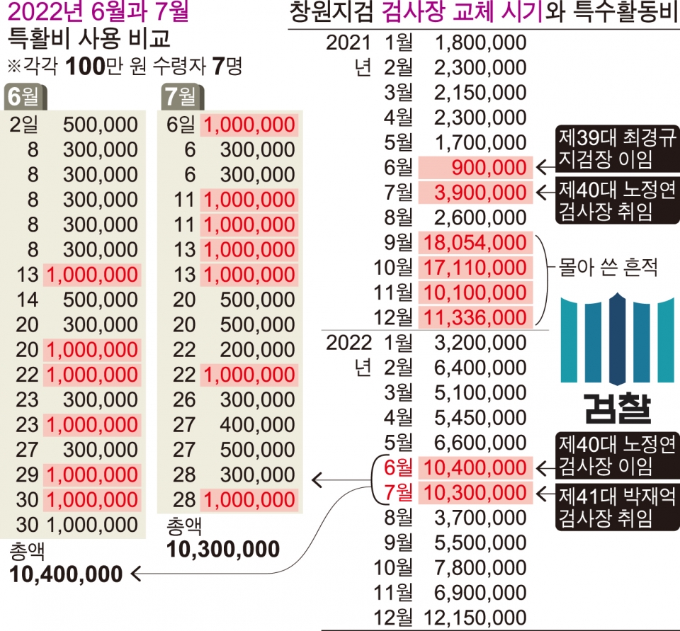[검찰, 하얀 장부] 창원지검 특활비 월 1000만원 이상 집행 9차례