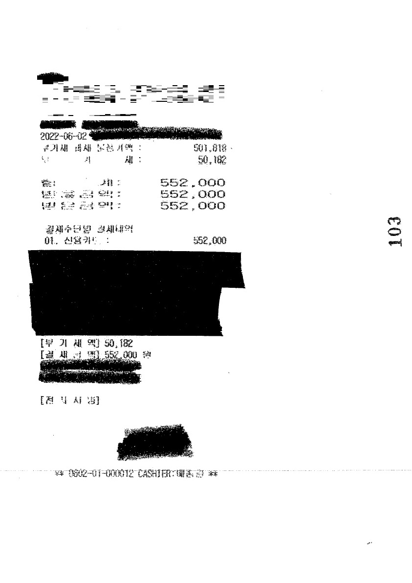사업 내용이 적힌 명세서는 없고, 2020년 10월 26·28·29일 창원 사파동 마트·제과점·카페와 남양동 과일가게 등(58만 9140원)을 이용한 영수증 5개와 매출전표 1개만 첨부한 사례도 있었다.