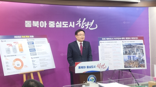 홍남표 창원시장은 26일 시청에서 기자회견을 열고 국비 확보 주요 성과와 의미, 향후 계획을 발표했다. 시가 내년 정부 예산에서 확보한 국비 규모는 1조 7956억 원으로 올해보다 1854억 원(11.5%) 늘었다.