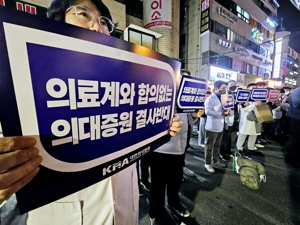 집회 참석자들은 이날 의대 증원 확대가 국내 의료 체계 근간을 흔드는 잘못된 정책이라고 주장했다. 또 의료접근성, 연간 의료이용건수, 의료기관수, 병상수, 진료대기시간 등 거의 모든 보건의료지표가 경제협력개발기구(OECD) 회원국 가운데 최상위권이라는 점을 강조하며 의사 수를 늘릴 필요가 없다고 강조했다.