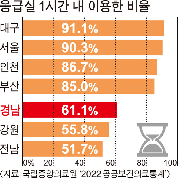 도는 응급 진료 공백을 줄이고자 현재 7곳인 지역응급의료센터를 확대할 방침이다. 지난달 창원시 SMG연세병원이 지역응급의료기관에서 지역응급의료센터로 격상해 중증환자 최종 치료를 하고 있다. 도는 거제시 지역응급의료기관인 거붕백병원·대우병원·맑은샘병원 중 1곳을 지역응급의료센터로 격상하고자 의료기관 요청 때 적극적으로 행정 지원을 할 계획이다. 또 최근 폐업한 양산 웅상중앙병원 영향을 최소화하고자 양산지역에 응급실을 설치할 수 있는 대안을 마련하고 있다.
