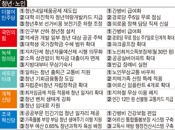 ◇간병비 급여화·경로당 무료 점심 현실성은 = 60대 이상 유권자는 1400만여 명으로 4년 전 총선 때보다 200만여 명 늘었다. 거대 양당은 고령화로 늘어난 노인층 표심을 잡고자 공통으로 간병비 급여화와 경로당 무료 점심을 공약했다.