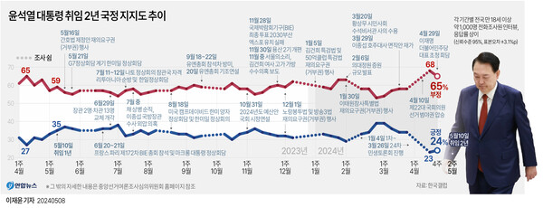 공과 사를 구분할 줄 몰라 ‘박절하지 못한’ 부인을 징치하지 못하는 대통령에게 분노한 국민은 그에게 더 없이 박절한 평가를 내렸다. 의석 수 192대 108. 22대 총선 결과는 윤석열 정부 심판이다. “국정 기조를 전환하라” 요구하고 있지만 태도가 바뀌리라는 기대감은 크지 않다. 집권 만 2년이 된 윤석열 대통령과 정부를 향한 국민 시선이다.