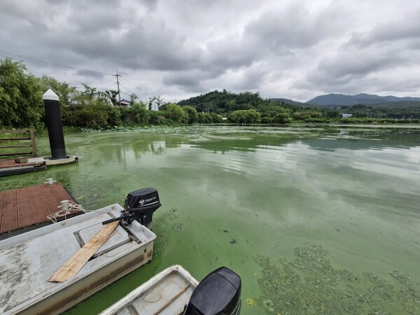 한국농어촌공사 창원지사는 지난 15일 오전 9시께 주천강과 연결되는 저수지 수문을 개방했다. 이어 같은 날 오후 1시 창원 의창구 대산면 농어촌공사 회의실에서 창원물생명시민연대 등 도내 환경단체와 면담하고 녹조가 사라질 때까지 수문을 개방하겠다고 설명했다. 엄경재 저수관리팀 과장은 “본부 차원에서 녹조 시료를 채취해 조사를 진행하고 있다”며 “녹조가 발생하지 않도록 대책을 마련하겠다”고 밝혔다.