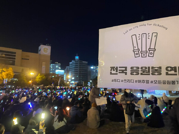 주최 측이 행사 종료를 알리자 응원봉을 든 이들이 '전국 응원봉 연대' 깃발 주변에 모였다. 이들은 응원봉을 모아 사진도 찍었다. 어떤 이는 스케치북에 응원하는 아이돌 그룹 가수 이름을 적고 '살기 좋은 세상 만들어줄게'라는 각오를 써넣기도 했다. 이는 현장에 함께 있었음을 인증하는 것으로 아이돌 팬들에게는 익숙한 모습이다. 서울 집회 현장에서도 다양한 성향인 개인 저마다 개성있는 깃발을 만들어 들고 집회에 나서기도 했다. 응원봉이나 깃발 응원은 아이돌 콘서트에서 흔히 보는 풍경이다. 또, 프로 스포츠 구단 응원에도 쓰인다. NC다이노스 팬들이 방망이 모양 응원봉과 긴 수건을 머리에 두르는 것과 같다.