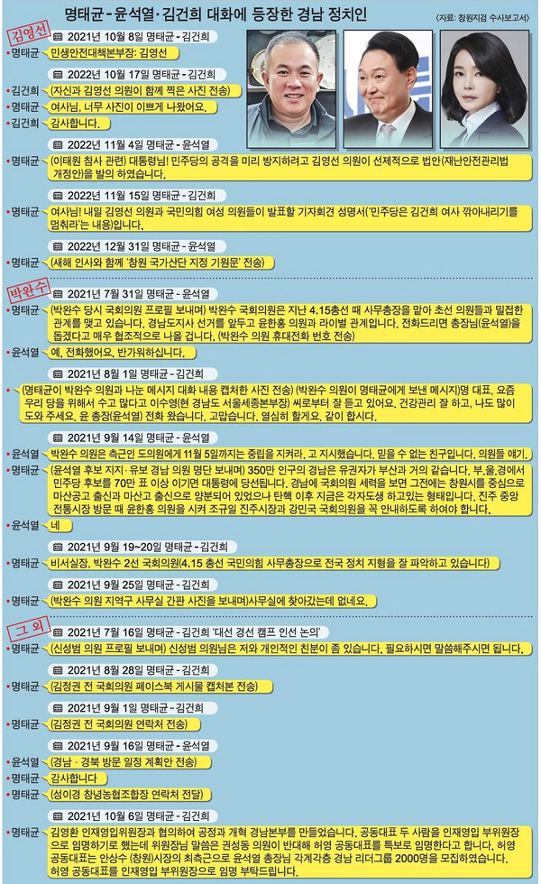 ◇김영선 비루함에 지역민 모욕감 = 명태균 씨는 지난 대통령 선거 당시 윤석열 후보에게 유리한 여론조사 결과를 만들어주고, 이를 계기로 윤 대통령 부부와 가까워졌다. 이들에게 공천권을 요구하고 뒤에서는 다른 정치인에게 금품을 챙겼다는 의혹을 받고 있다.