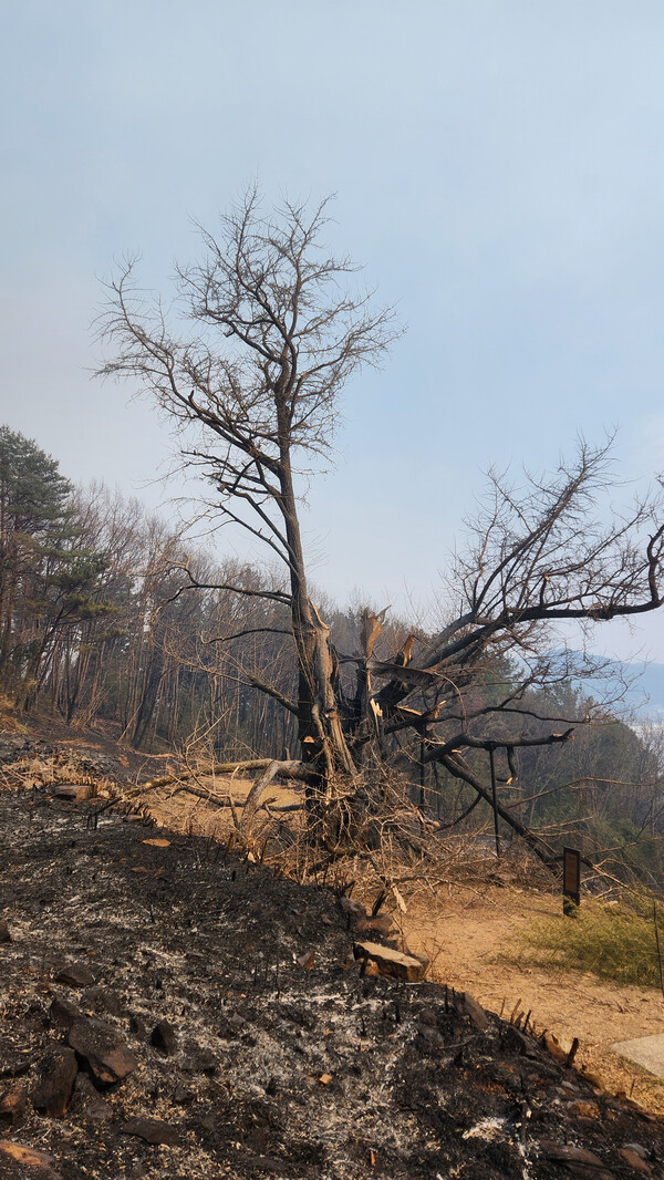 산청군 등에서 대형 산불로 말미암은 피해가 확산하는 가운데 문화유산들도 화마를 피하지 못해 안타까운 목소리가 곳곳에서 나오고 있다.