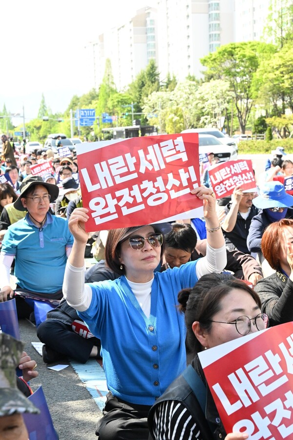 시민들은 대회를 마친 후 “내란 정당 해체” 구호를 외치며 국민의힘 경남도당으로 행진했다.